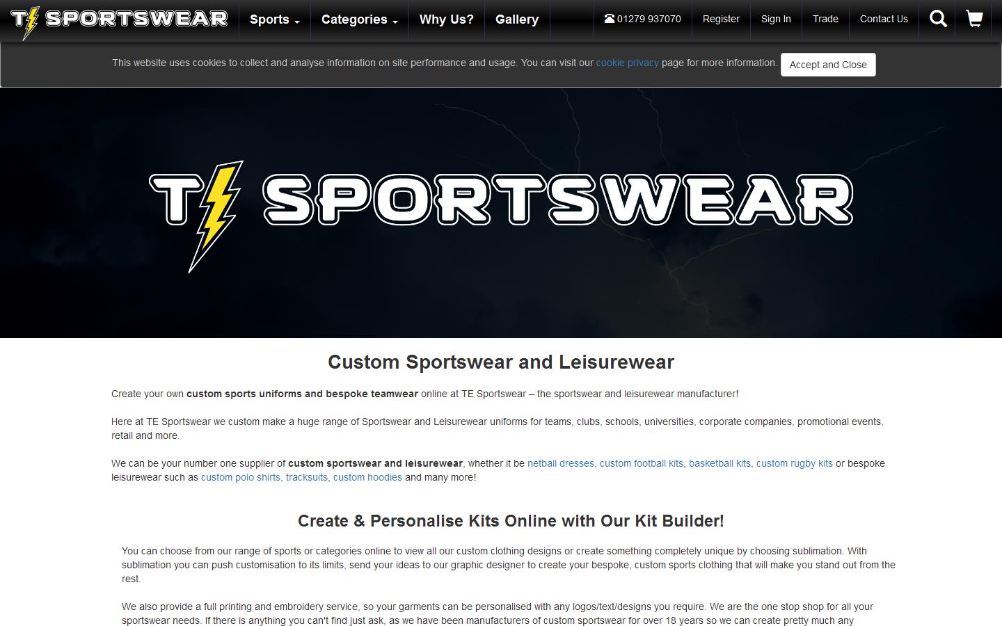 Create your own custom sports uniforms and bespoke teamwear online at TE Sportswear − the sportswear and leisurewear manufacturer!