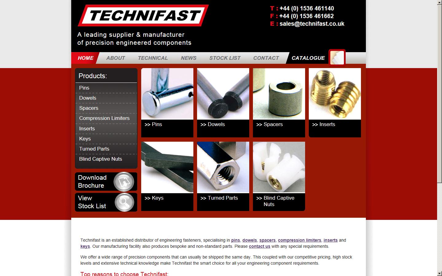 Technifast is an established distributor of engineering fasteners, specialising in pins, dowels, spacers, compression limiters, inserts andkeys. Our manufacturing facility also produces bespoke and non-standard parts. Please contact us with any special requirements.