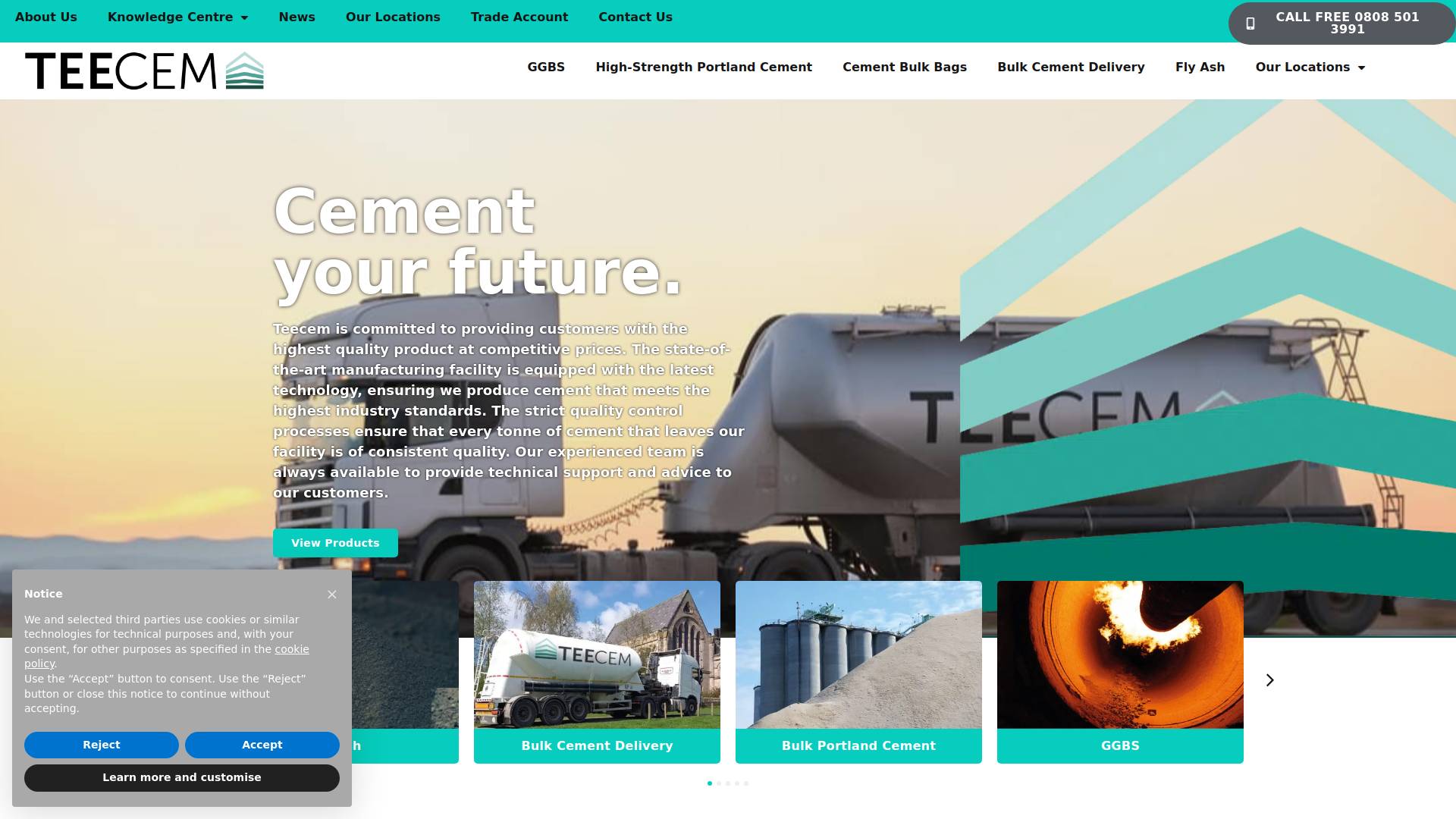 Teecem is a premier UK supplier of high-quality cement and GGBS products, delivering strength, durability, and sustainability across the construction industry. From our Teesside base, we serve the North of England and Midlands with efficient bulk and bagged cement solutions. Our state-of-the-art facility, rigorous quality control, and expert support team ensure reliable supply and superior product performance. Backed by advanced logistics and port access, Teecem is your trusted partner for timely, cost-effective cement delivery.