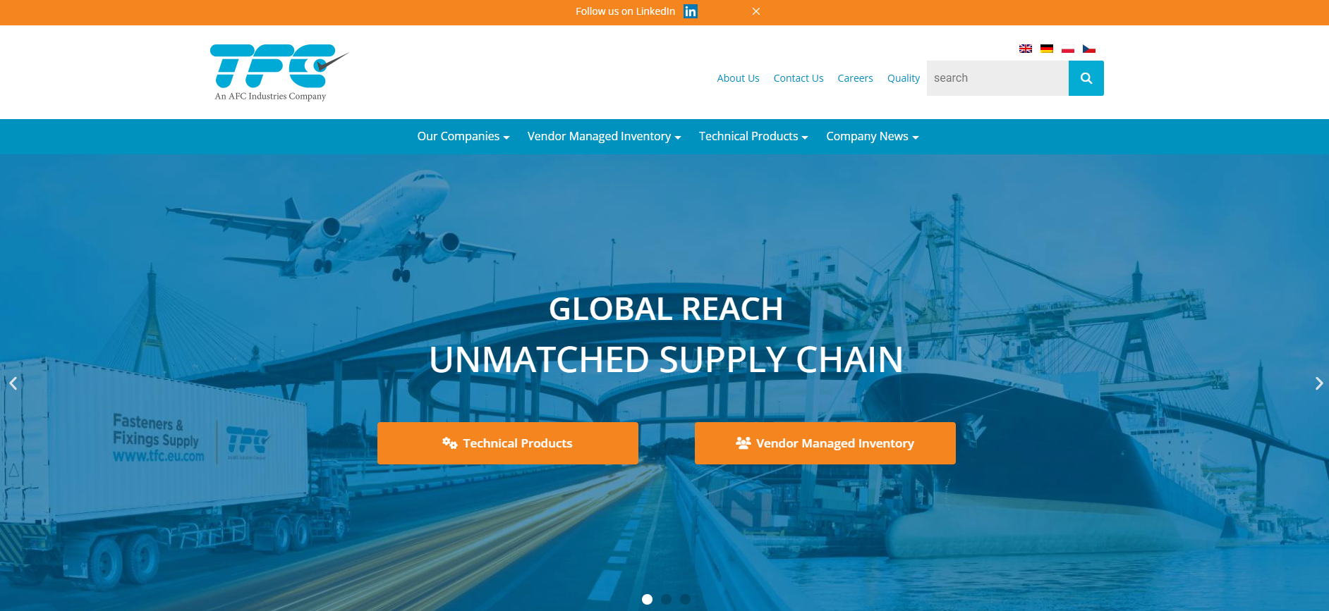 TFC brings together an extensive range of fastener products and services, to fulfil all industry and manufacturing requirements across Europe. Our huge product range includes; Bearings, , Bolts, Cable clips, Connectors, Circlips, Clamps, Laminar Sealing Rings, Coil springs, Wave Springs, Spirolox Retaining Rings, Disc springs, Fixings, Supply Chain Assist.