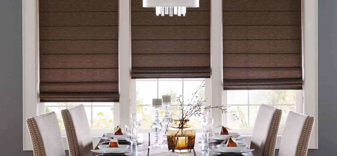 Among the countless blind options available, pick Roman blinds if you want a classic touch and a sturdy finish. These are flat blinds with cords that can be hung on windows or doors and folded back onto the top.