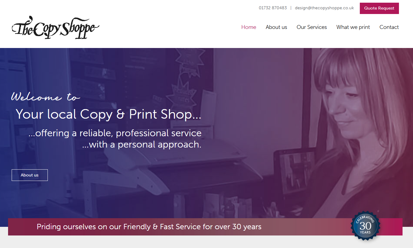 In 2014 Sue and Paul retired and handed the reins over to Sue Morris who became the proud owner of the business. Sue along with Diane, the Copy Shoppes repro specialist, continued their working relationship together, having worked together for some 25 years, first meeting at Kentec Design and Print, Snodland, they both have a combined experience of 60 years in design, print and customers service.