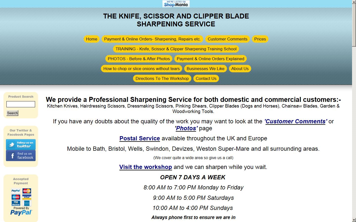 The Knife, Scissor & Clipper Blade Sharpening Service