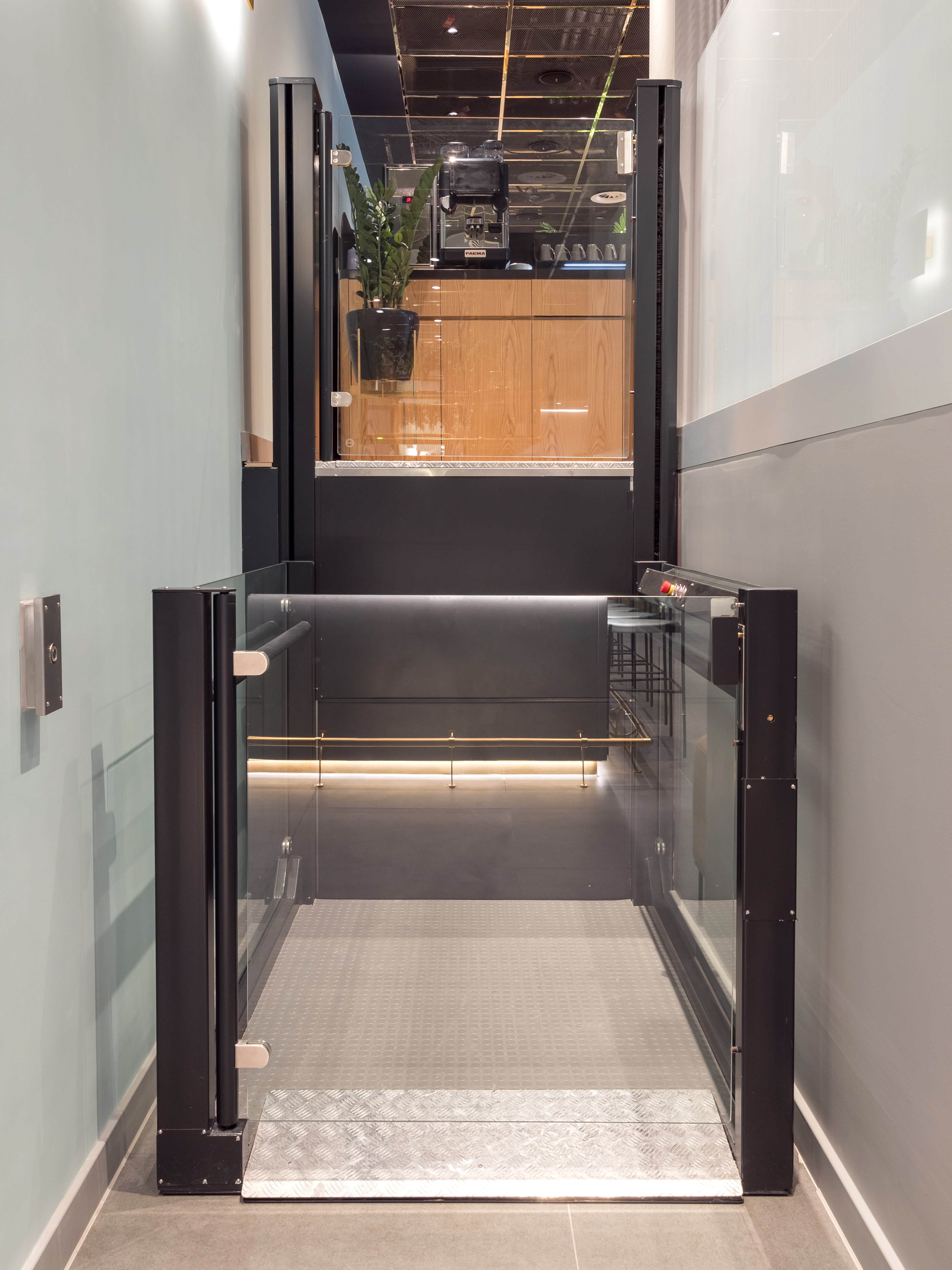 The PLC Motala 2000 commercial platform lift outclasses all its competitors. No other platform lift offers the same high-quality level of performance, low noise level and the option to be glazed on all four sides. The PLC Motala 2000 is unique with its twin guided chain drive system and its incredibly small footprint (1560mm deep x 1250mm wide, with an 1150mm wide option).