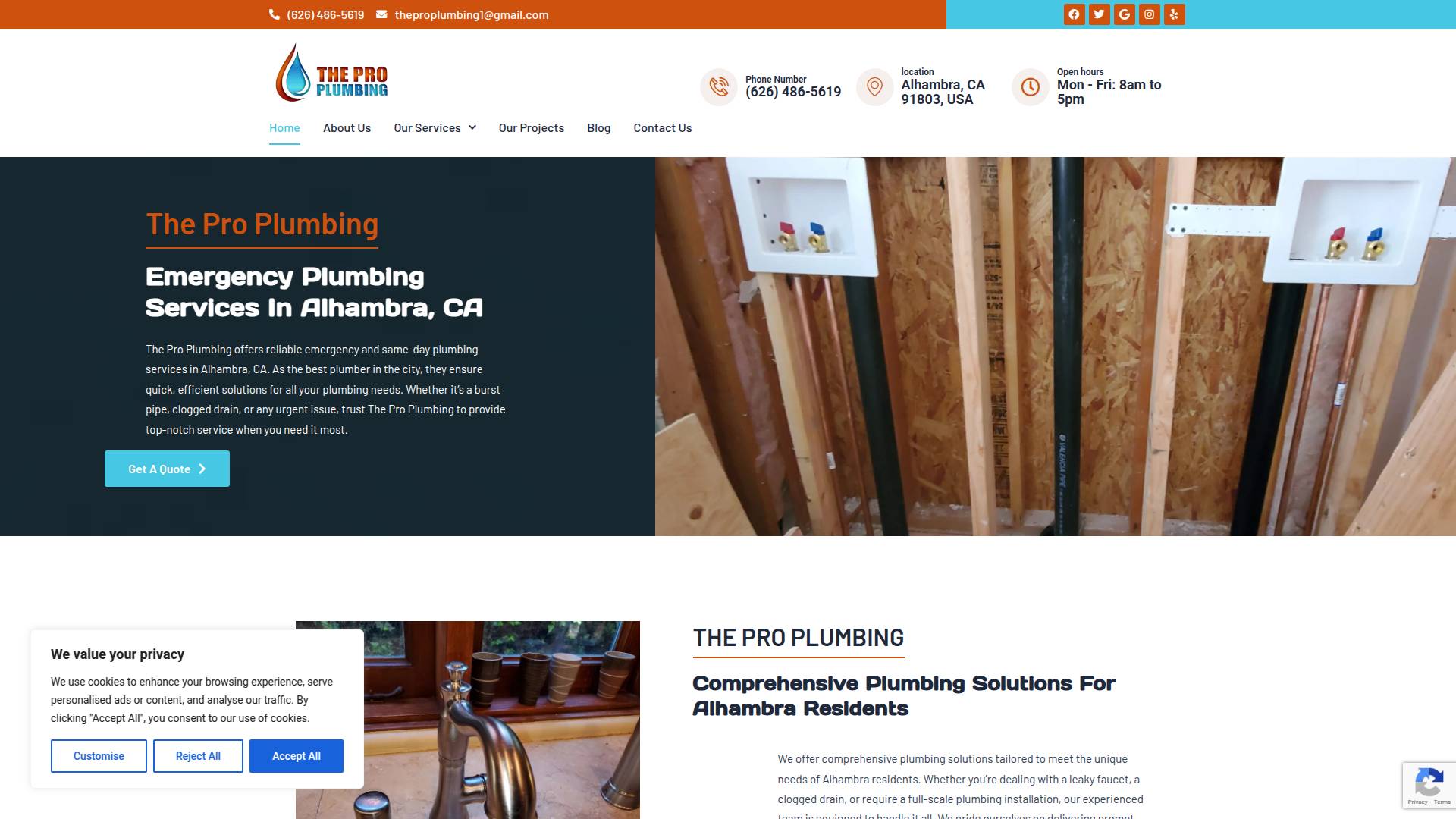 The Pro Plumbing offers reliable emergency and same-day plumbing services in Alhambra, CA. As the best plumber in the city, they ensure quick, efficient solutions for all your plumbing needs. Whether it’s a burst pipe, clogged drain, or any urgent issue, trust The Pro Plumbing to provide top-notch service when you need it most.