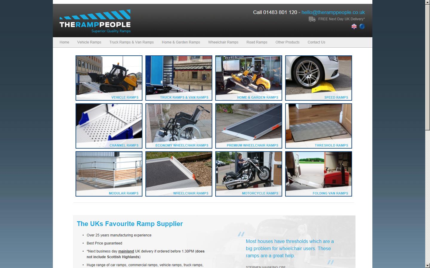 The Ramp People have over 25 years manufacturing experience with a huge range of car ramps, commercial ramps, vehicle ramps, wheelchair ramps truck ramps, van ramps, disabled ramps, portable ramps & motorcycle ramps which are amongst the most durable available on the market.