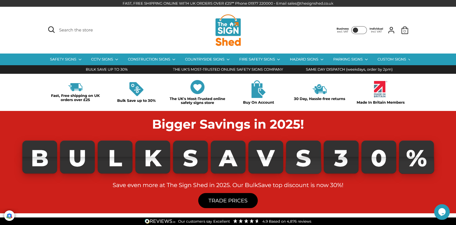 With discount savings of up to 35% applied at the checkout automatically, our complementary Best Price Guarantee, free delivery options, and easy returns, it's no wonder The Sign Shed is one of the UK's fastest-growing health and safety sign providers.