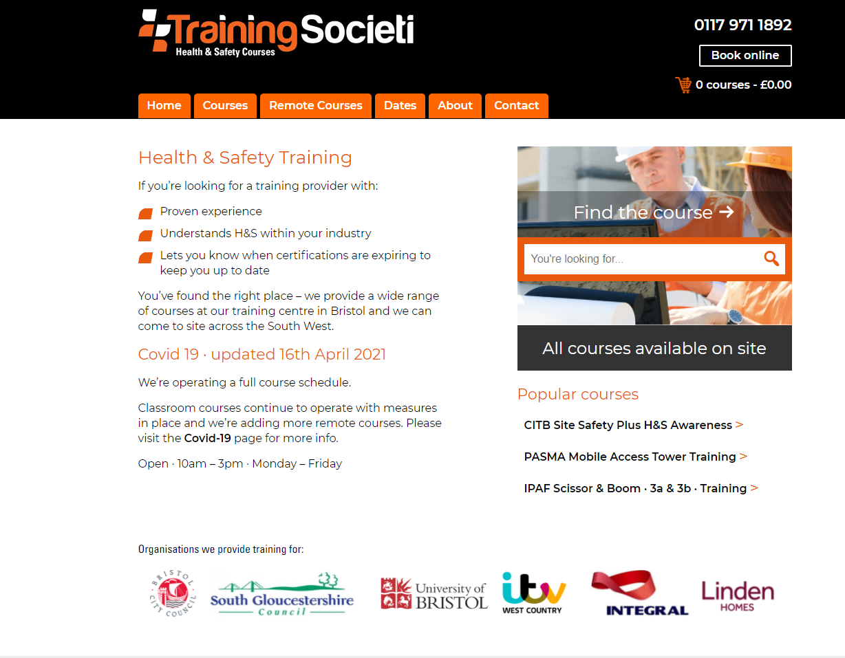 The Training Societi are a national group of highly experienced health and safety professionals whose aim is to keep your personnel and business safe and legal with specialised training courses.