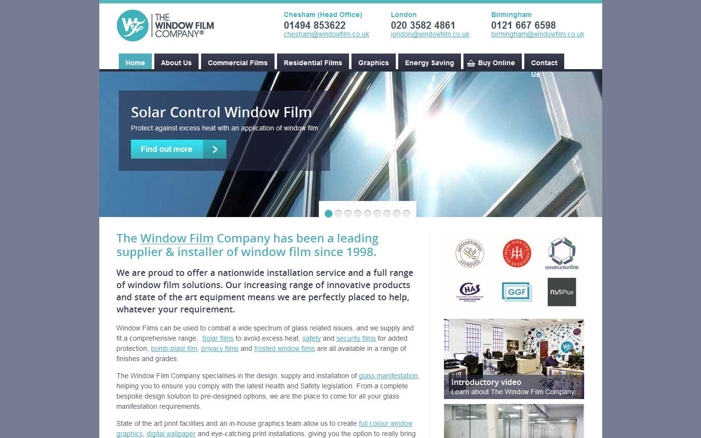 The Window Film Company ® are specialists in the supply and installation of all types of window film including solar control, safety, security and privacy frosted window films for glass in your home or office.