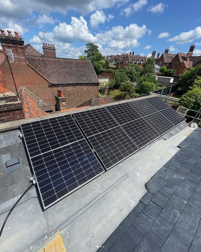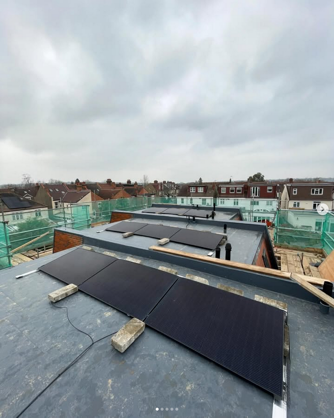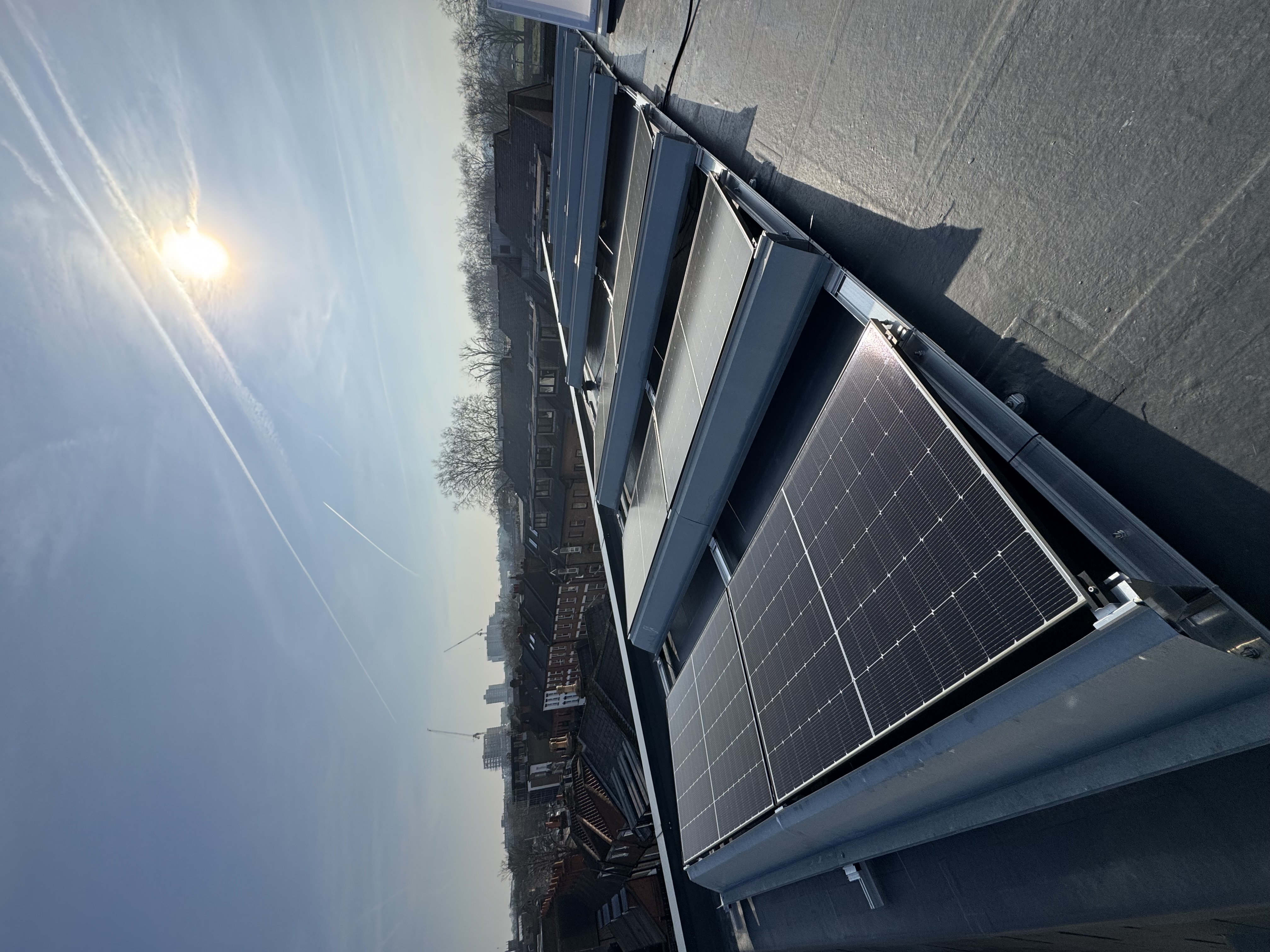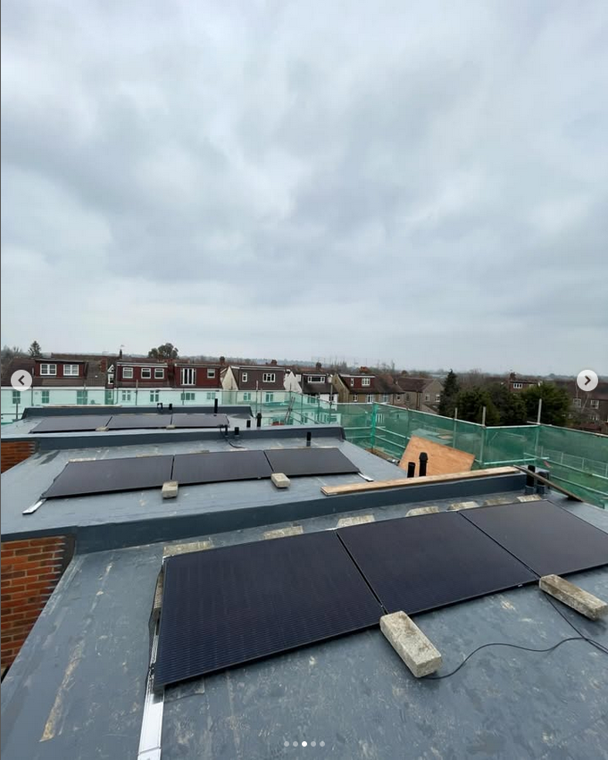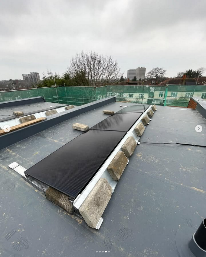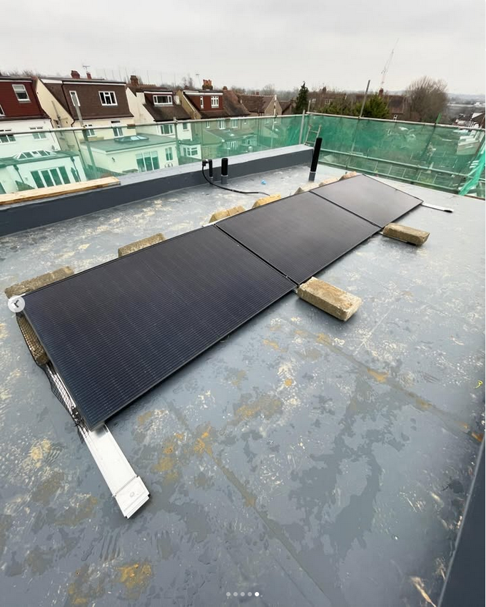 At Thermadetect Ltd, we specialise in delivering cutting-edge renewable energy solutions tailored to your property. Featured here is one of our expertly installed flat roof solar PV systems, designed to maximise energy generation while blending seamlessly into the urban landscape. With Thermadetect Ltd, your rooftop becomes more than just protection from the elements – it becomes a renewable powerhouse that saves you money.