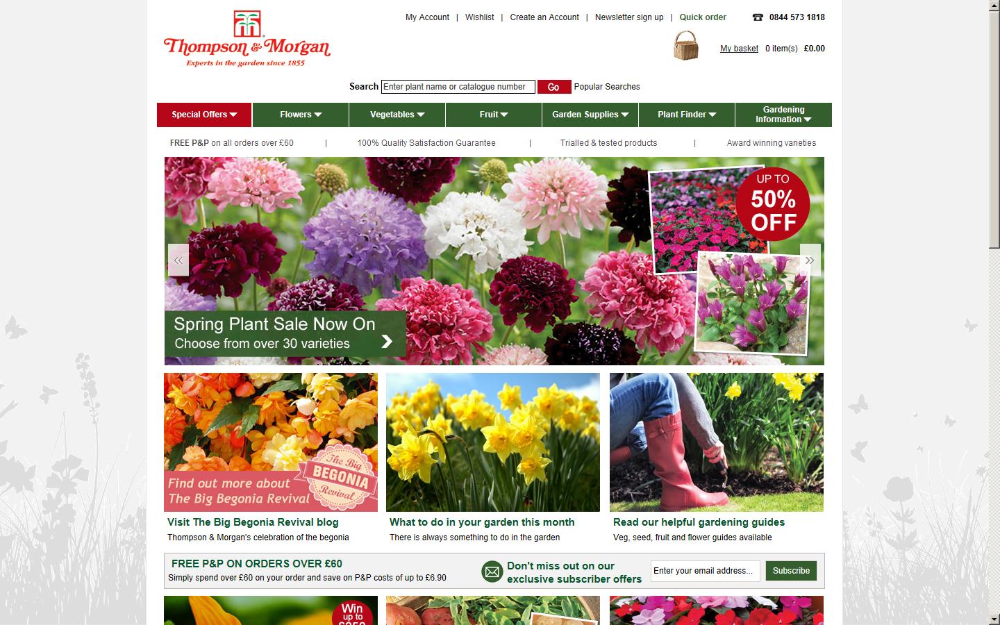 UK''s leading bulb and seed supplier, Thompson & Morgan can meet your gardening or landscaping needs by supplying a huge range of plant, seeds and bulbs to the consumer. We also supply other gardening products such as tiered planters and offer gardening advice.
