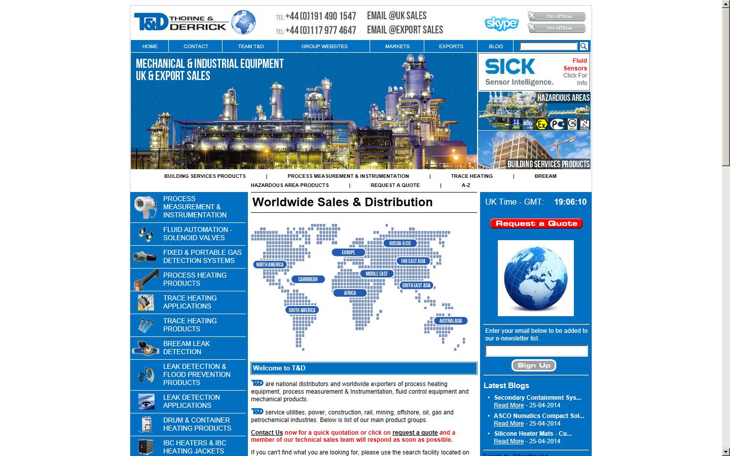 Thorne and Derrick Trace Heating - Underfloor heating design, process measurement, solenoid valves, biogas meters, leak detection, container heating products and various other related products.