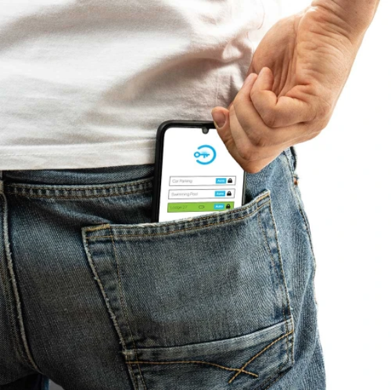 The end user’s smartphone is employed as the access token, securely connecting with the authorised locking device via Bluetooth Low Energy (BLE).