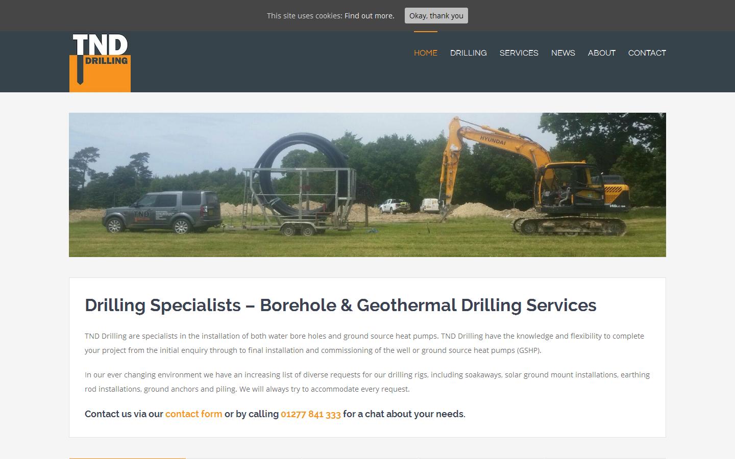 TND Drilling is a well respected company that has been trading for 10 years. We offer many drilling based services including geothermal and water boreholes, earthing, lightening protection work, piling, site investigation, borehole inspection camera work, moleing and pile integrity testing for both commercial and residential or domestic projects.