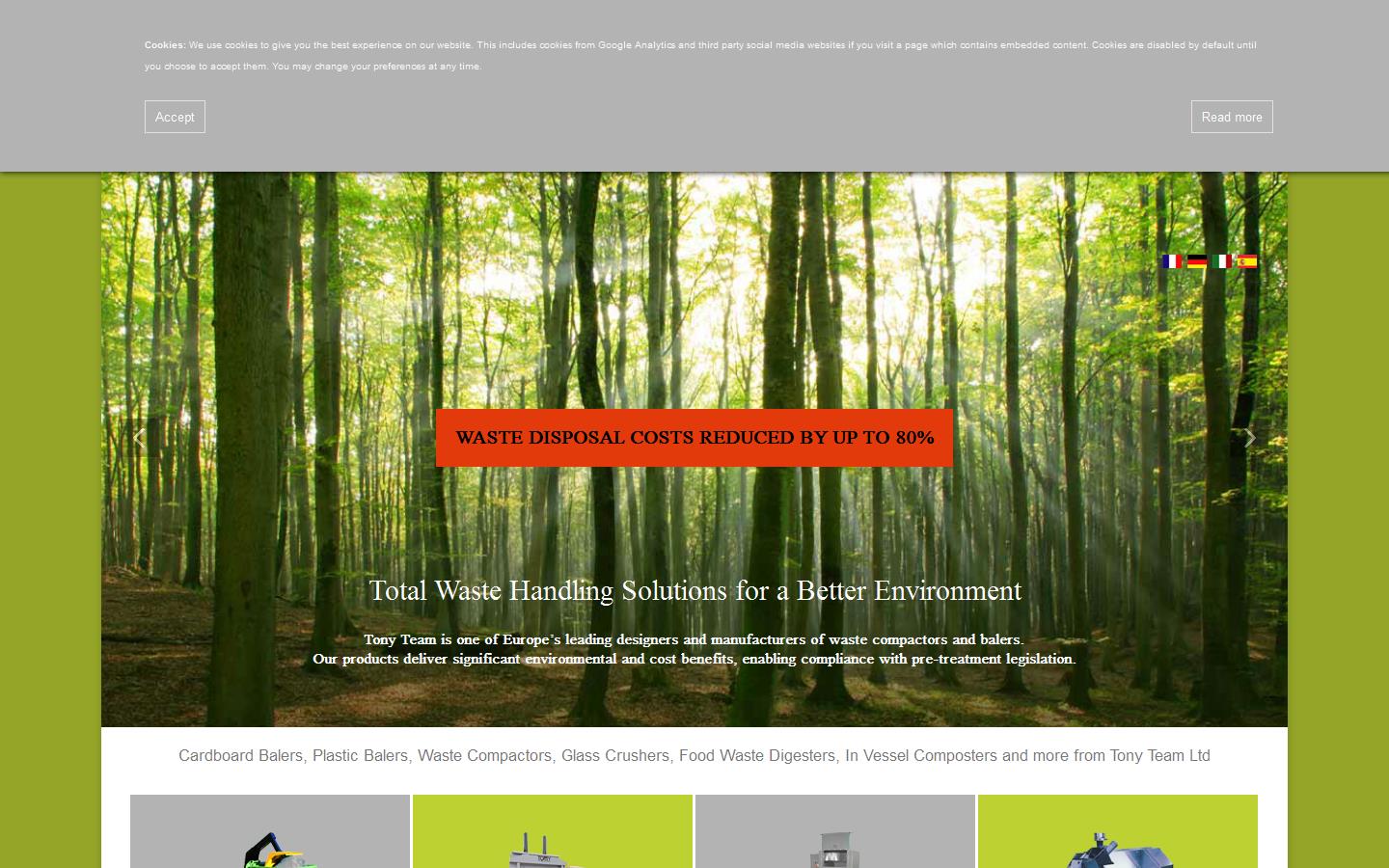 Cardboard Balers, Plastic Balers, Waste Compactors, Glass Crushers, Food Waste Digesters, In Vessel Composters and more from Tony Team Ltd
