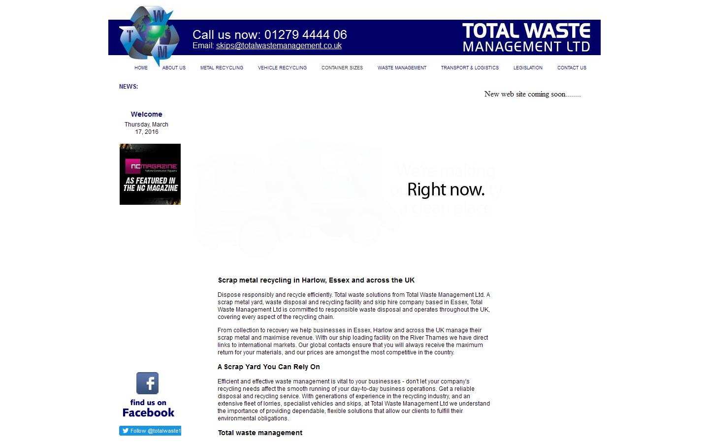 A scrap metal yard, waste disposal and recycling facility and skip hire company based in Essex, Total Waste Management Ltd is committed to responsible waste disposal and operates throughout the UK.