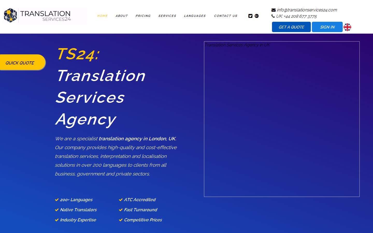 Founded in 2011 in London, UK, Translation Services 24 (TS24) is the UK's best and leading translation company. Offering language solutions to clients in the UK & Europe we specialise in professional and accurate translation, interpreting and localization.