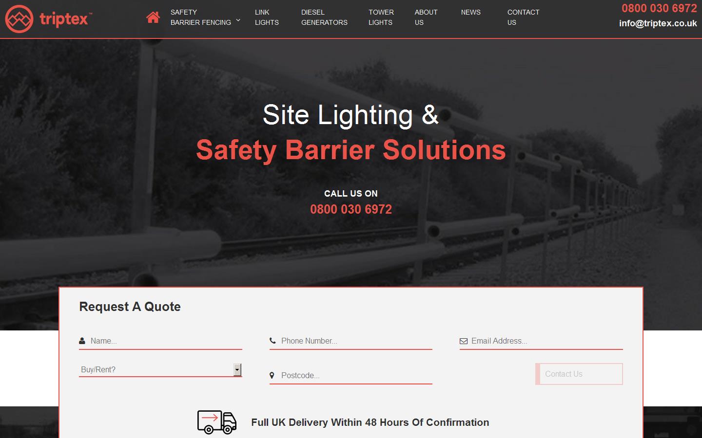 Triptex Ltd provide practical solutions for site lighting and safety barrier solutions across the UK. We have an innovative approach to our service and quality, with a 48 hour delivery service.