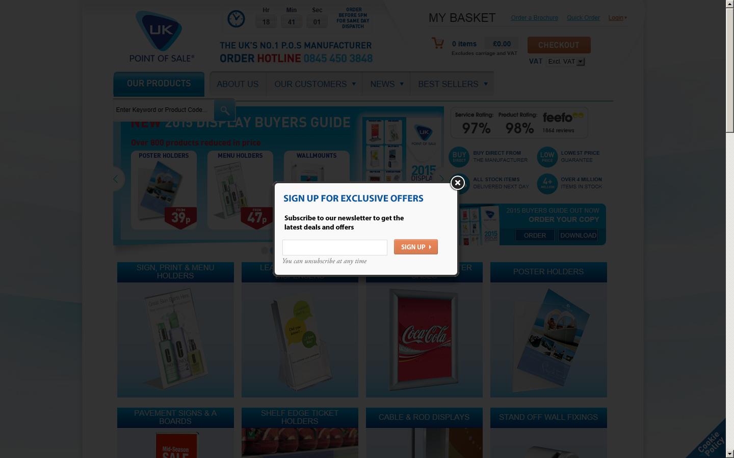 UK Point of Sale are the UK's leading display manufacturer. Some of the products they supply include pavement signs, leaflet holders and promotion stands.