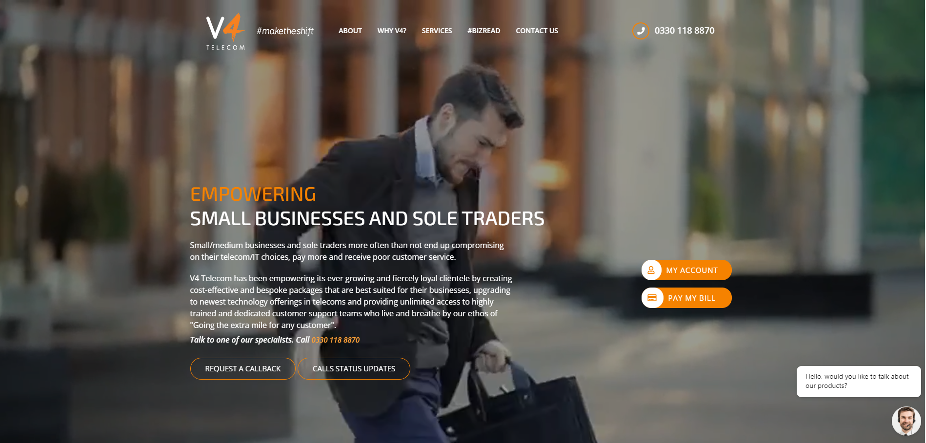 V4 Telecom supplies Fixed Voice, Business Mobiles, Data Services, IT Services, CCTV & Alarm Solutions, Card Payment Solutions to businesses across 3 markets.