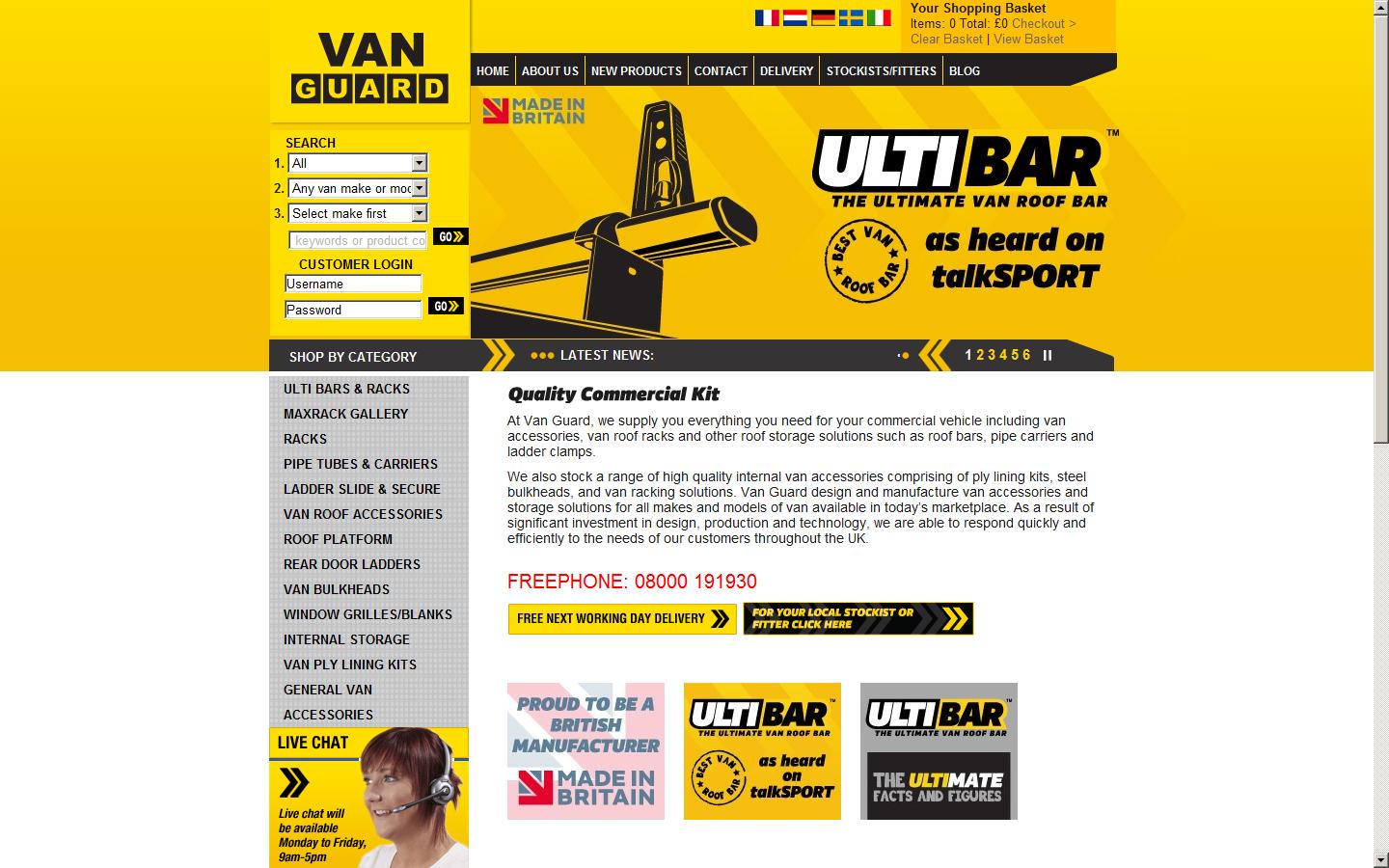 .At Van Guard we supply everything you need for your commercial van, including Window Grilles / Blanks, steel Bulkheads, Tool stores, Roof bars / Racks with/without Rollers, galvanized Roof baskets, Pipe carriers (crash tested),Van racking / shelving (steel and wooden) and Ply lining kits.