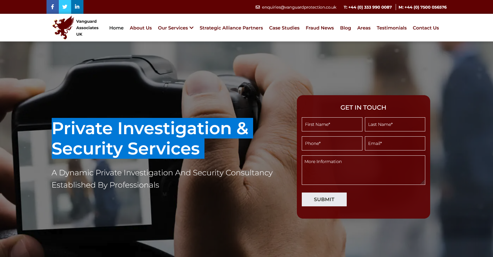 Vanguard Associates UK is an innovative private investigation and security consultancy founded by experts from various investigative and security fields, each bringing extensive knowledge, experience, and exceptional integrity.