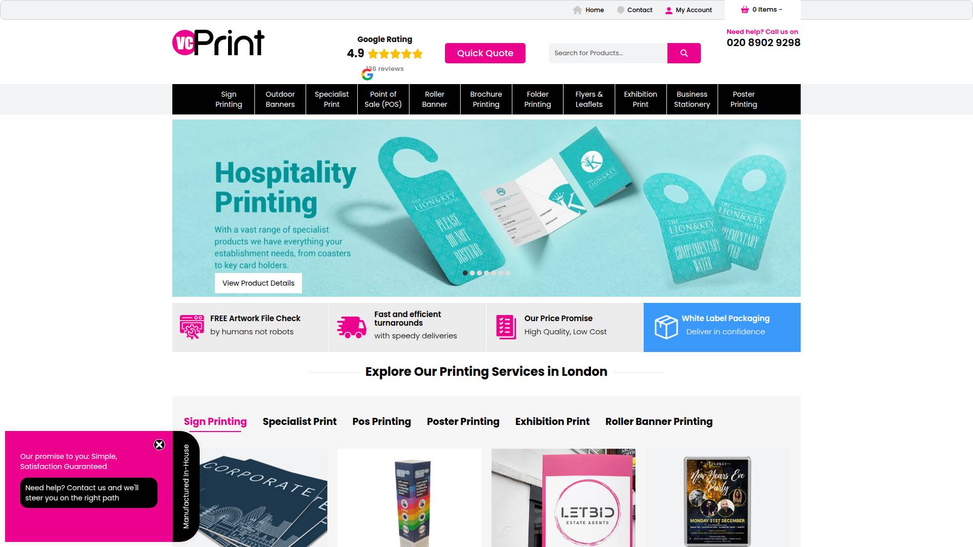 VC Print is a premier UK-based printing company offering top-tier printing services. We specialise in folder printing, roller banners, exhibition prints, outdoor banners, flyers, leaflets, brochures, signage, business stationery, POS materials, and other specialist prints. Our commitment to quality ensures that each product meets the highest standards, catering to diverse business needs. With a focus on customer satisfaction, we provide customised solutions to enhance your brand's visibility and impact. Trust VC Print for all your printing requirements.
