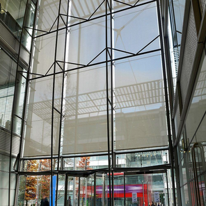 ShadeTech electric dim-out blinds deliver near-complete light control at the touch of a button. Perfect for high-level windows in entrance halls or atriums, or for integration with central AV systems, the DBL Dimout Blind features a high-performance zipped-edge design, shading areas up to 12 m² with a single blind.