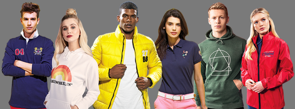 Workwear & Leisurewear − Polo shirts, t-shirts, sweatshirts, hoodies, baseball caps, beanies, safety hats, boiler suits, overalls, jackets, shells and body warmers.