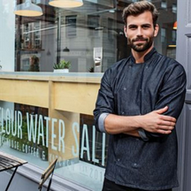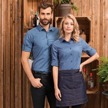 Custom-branded uniforms and smart-casual workwear for front-of-house teams in restaurants and bars.