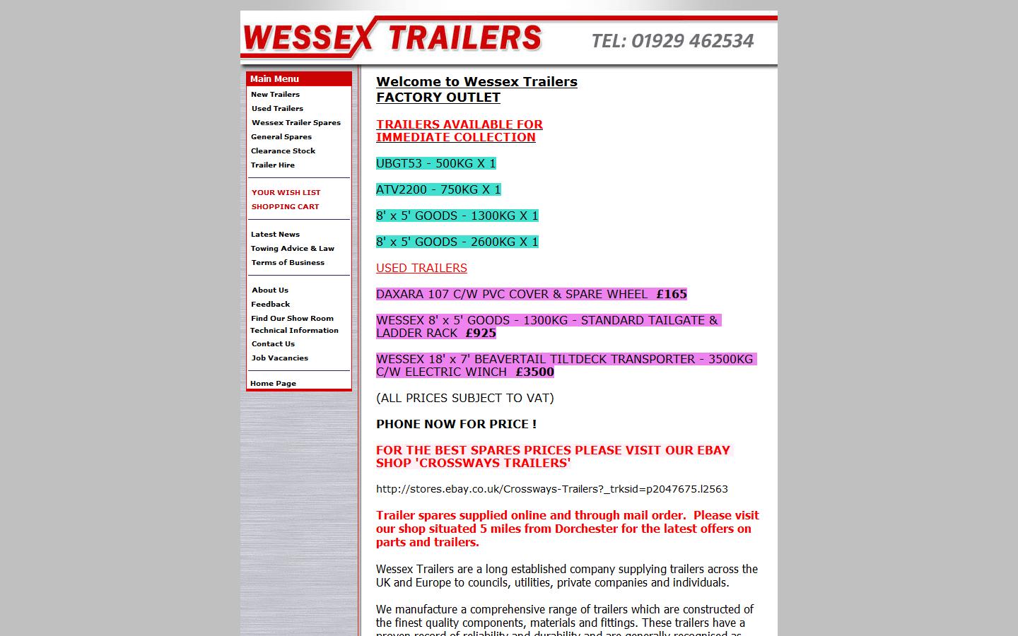 As of 5th September 2010, Crossways Trailers Ltd acquired the trading names of ‘Wessex Trailers’ and ‘Pegasus Trailers’. Crossways Trailers Ltd can still supply all parts for Wessex Trailers and all other makes/models of trailers.