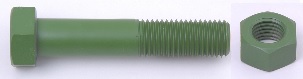 Pictured is a Xylan 1070 Leaf Grean coated Hexagon Bolt and Nut in Super Duplex UNS S32760