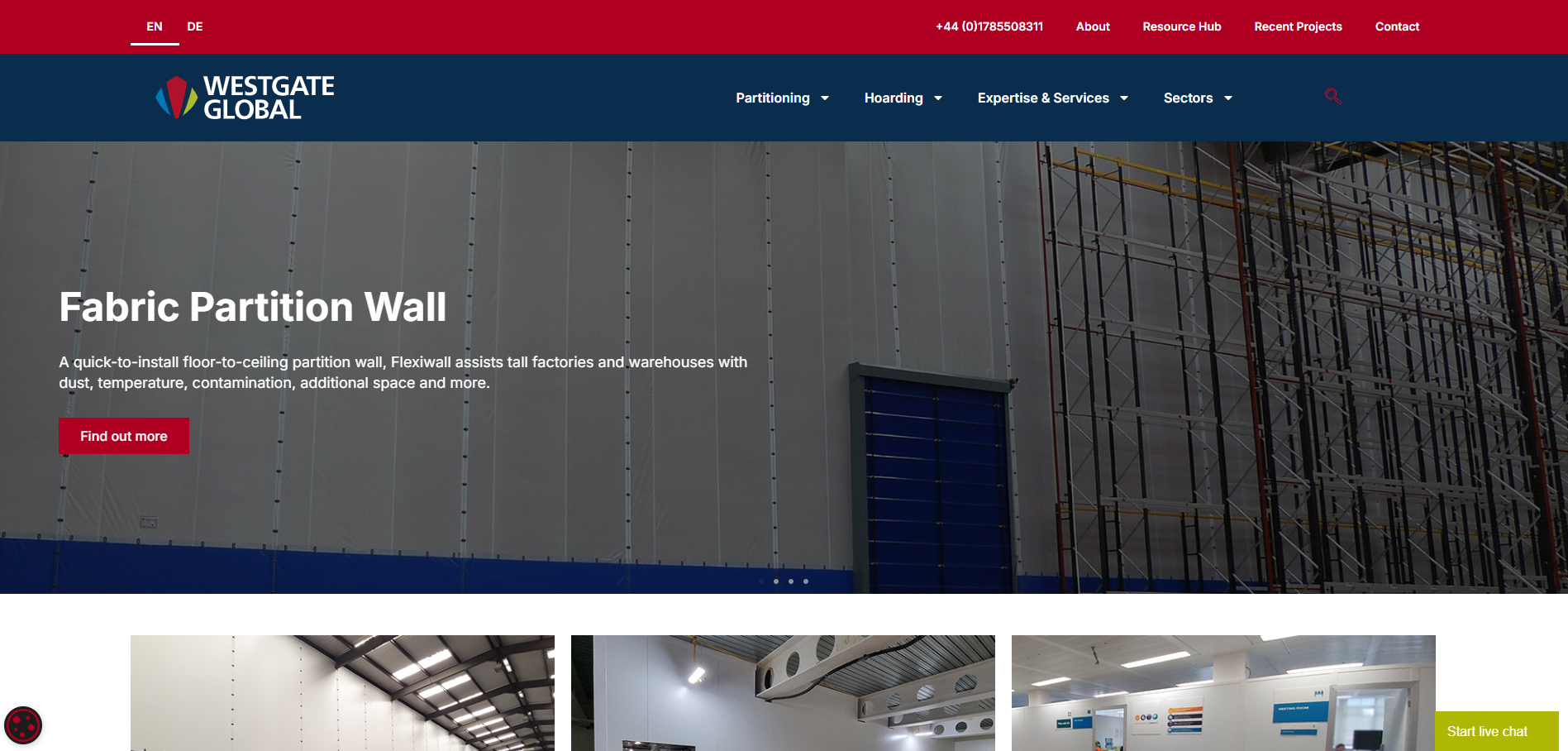 Westgate are market leaders in industrial factory and warehouse partitions, screens, doors and access solutions; construction and fit out hoarding screens; leisure, education and healthcare window film and blind solutions.