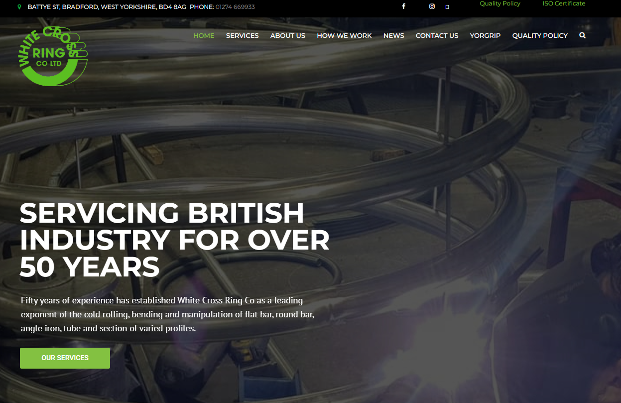 Unusual bespoke projects are always welcomed at White Cross Ring Co from components for stage sets to rolling a ring to enable the restoration of the famous Rose Window after the devastating fire of York Minister in 1984. We recognise that our willingness to investigate new and innovative techniques involving bending or other fabrication processes as being one of our major strengths.