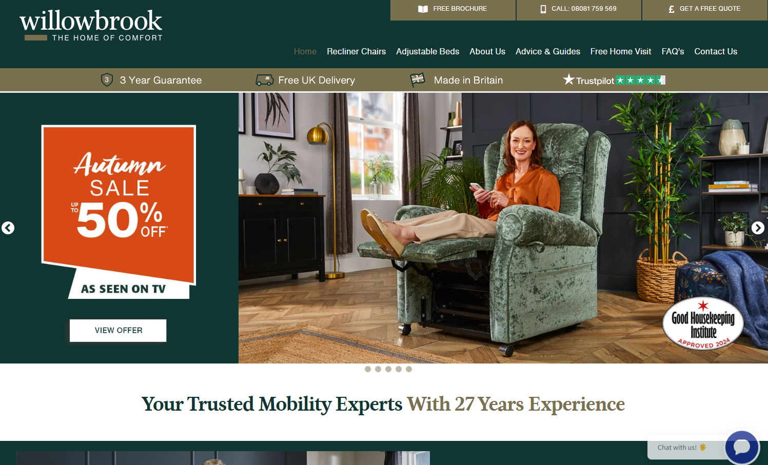 Unlike other companies, we build your riser recliner chair or electric adjustable bed in our very own UK factory, based in the heart of the West Midlands. All of our chairs and beds are British built and handmade by our craftsmen. Each piece of Willowbrook furniture is made with care, attention to detail and you in mind.