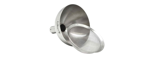 The spout on the filter is curved so that as the wine flows into the decanter or glass, it spreads across the decanter neck or side of the glass. This increases surfaces contact with air and promotes oxygenation, bringing out the full flavours of the wine. The funnel itself is fashioned from stainless steel to give a surface that will react naturally with the wine through volatilisation to decrease the sulphur dioxide content. This noticeably improves the wine’s aroma and taste.