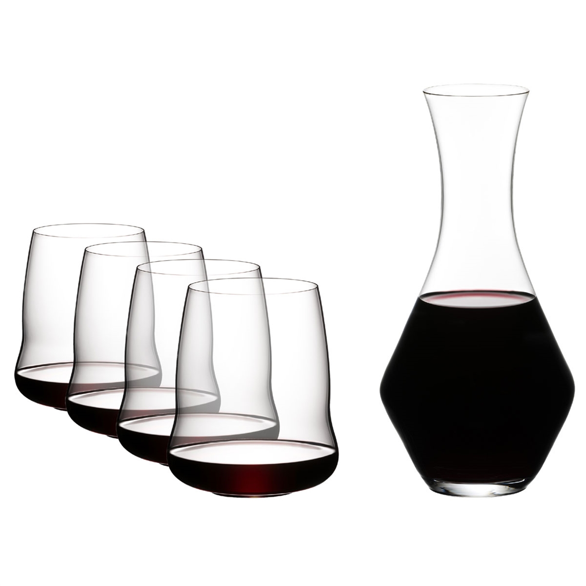 Riedel Stemless Wings Cabernet Sauvignon Glasses x4 + Decanter Gift Set - 5789/30