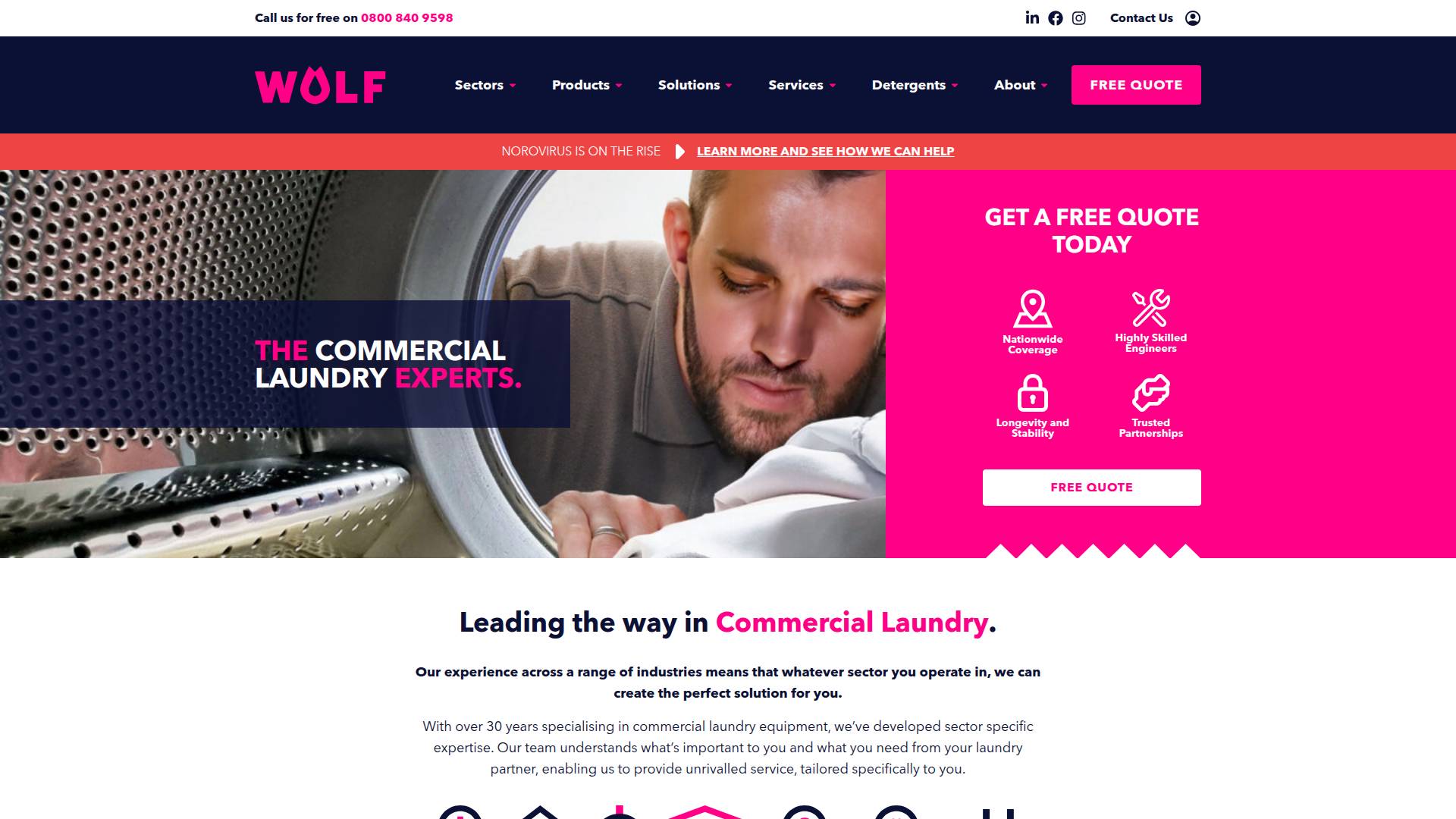 Established in 2007 Wolf Laundry have been leading the way in Commercial Laundry. With over 30 years expertise specialising in Commercial Laundry Equipment.