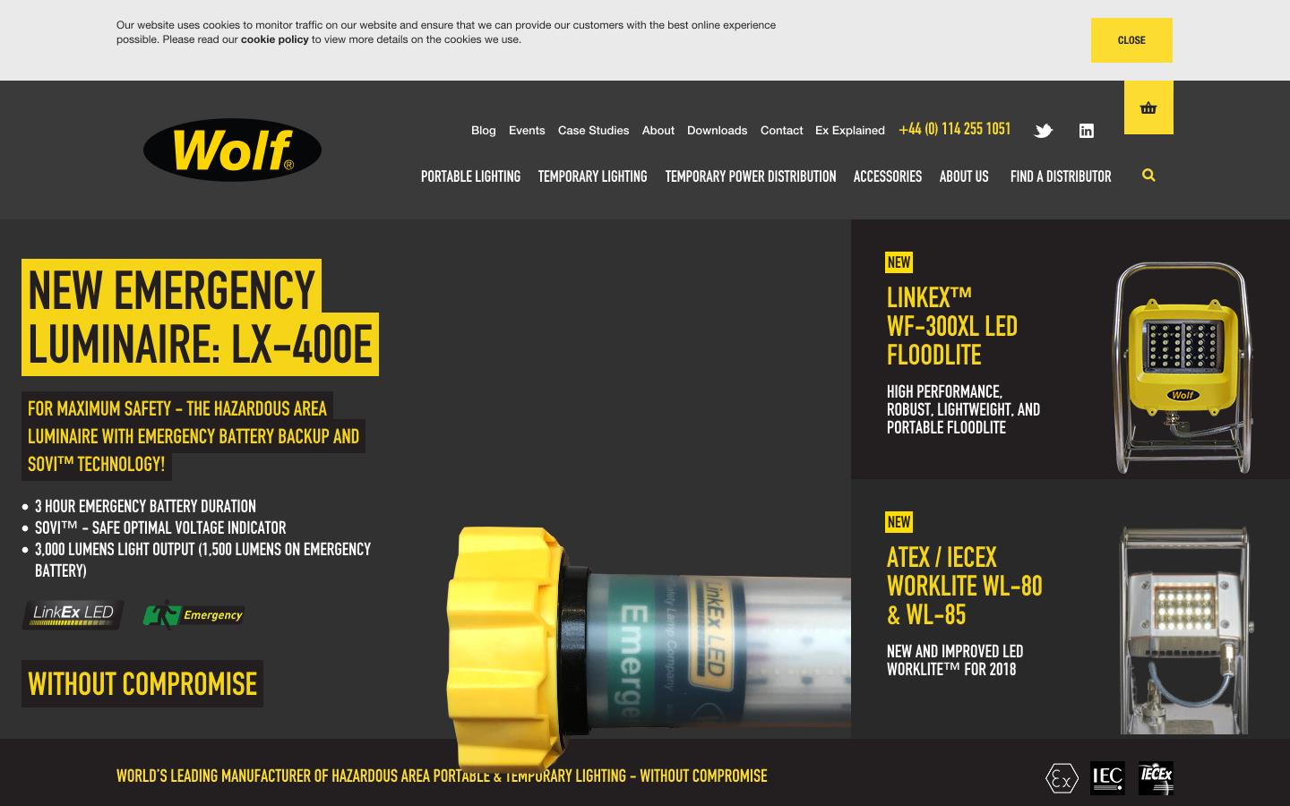 Wolf Safety Lamp Company manufacture lighting for hazardous area, portable and temporary applications and have a comprehensive range of ATEX and IECEX certified lighting and power distribution systems.