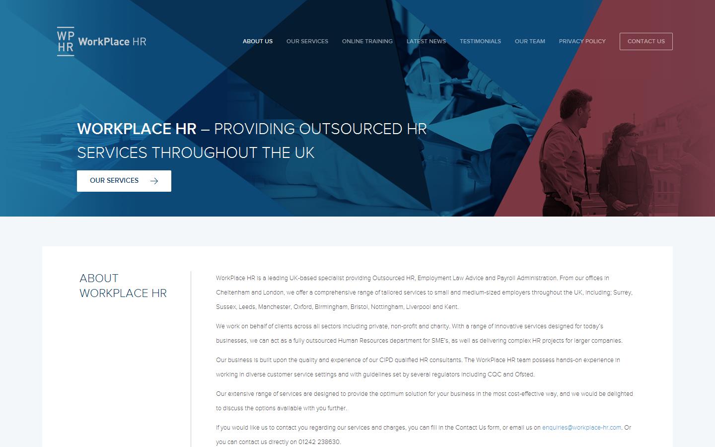 WorkPlace HR is a leading UK-based specialist providing Outsourced HR, Employment Law Advice, Pension Administration and Payroll Administration. WorkPlace HR is a leading UK-based specialist providing Outsourced HR, Employment Law Advice, Pension Administration and Payroll Administration. From our office in Cheltenham, we offer a comprehensive range of tailored services to small and medium-sized employers throughout the UK.