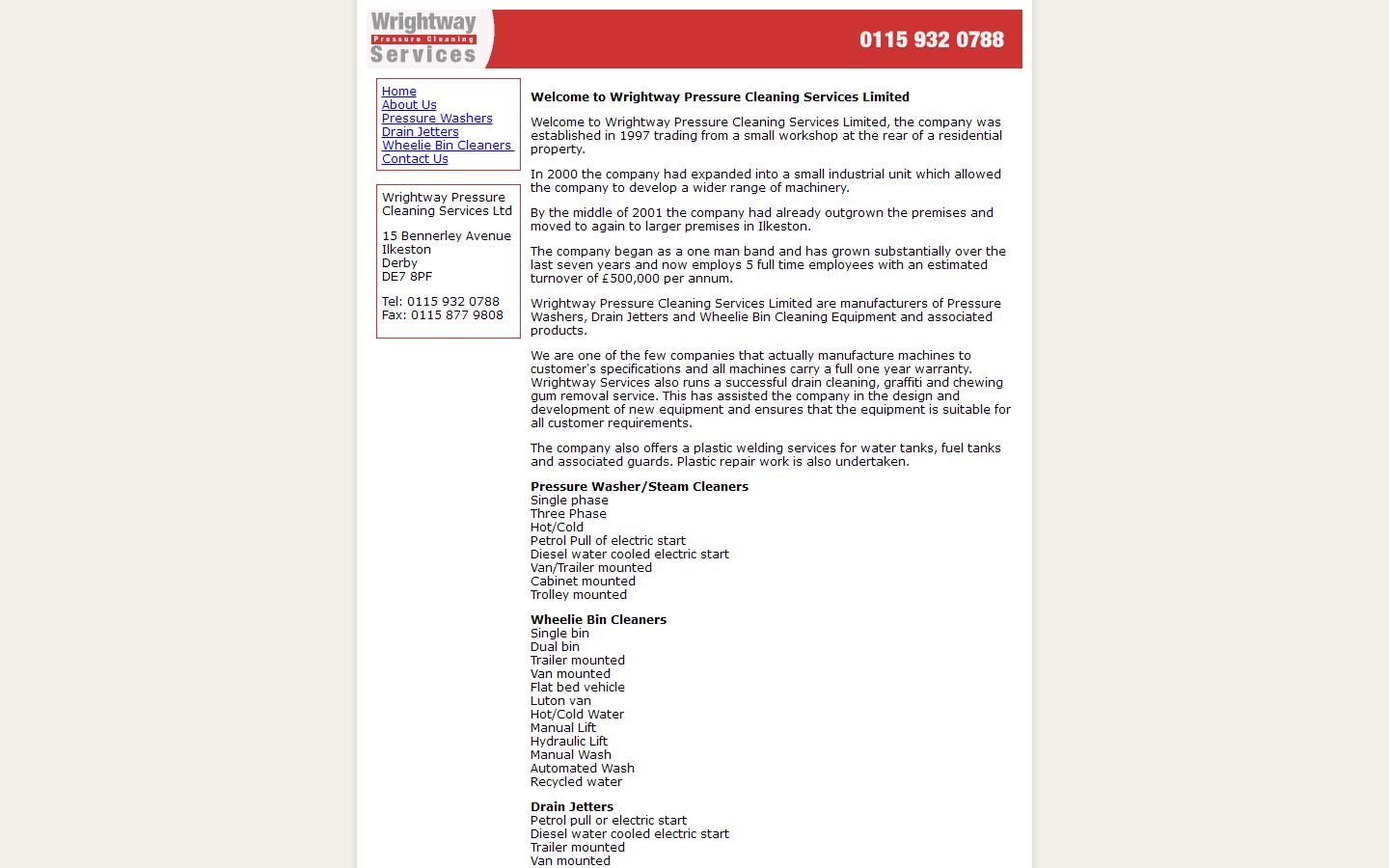 Wrightway Pressure Cleaning Services Limited are manufacturers of Pressure Washers, Drain Jetters and Wheelie Bin Cleaning Equipment and associated products.