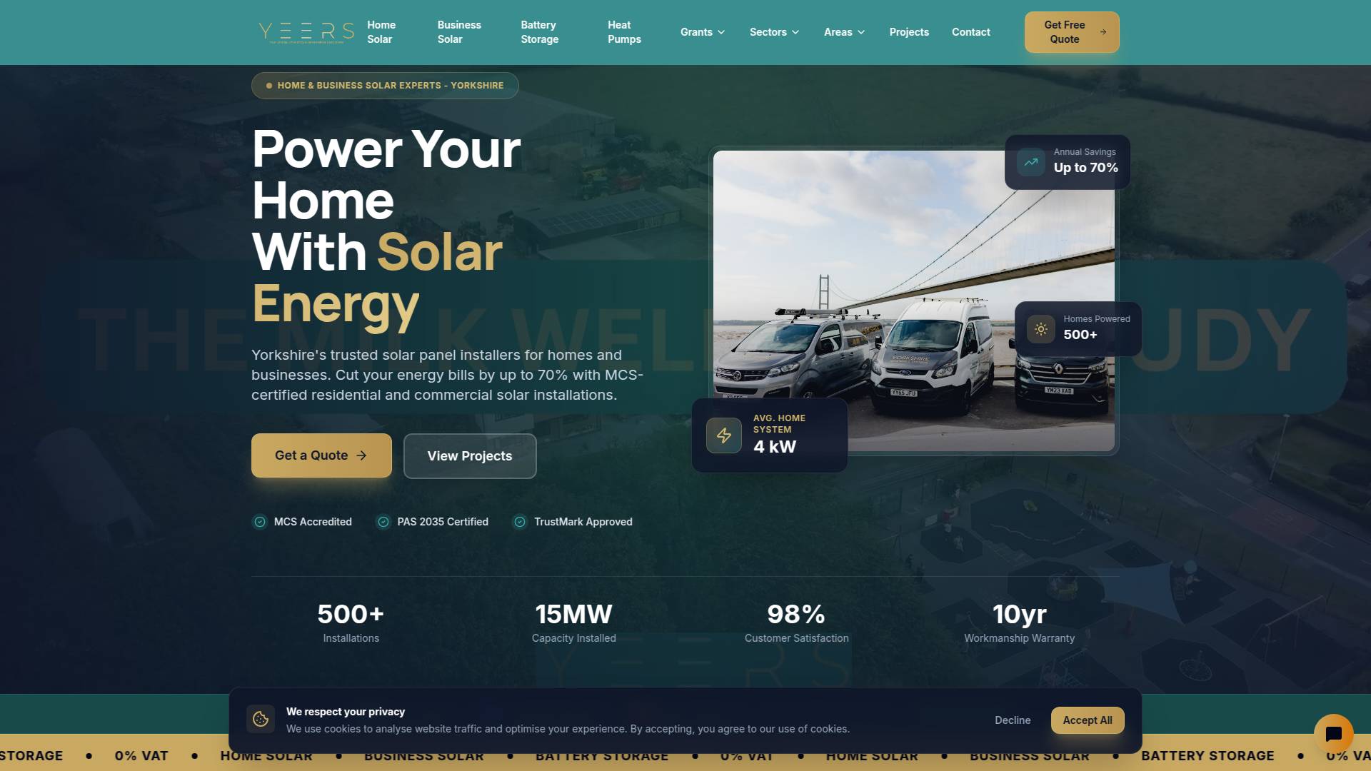 YEERS, powered by Yorkshire Renewable Systems Ltd, brings together decades of hands-on experience to combat energy inefficiency and reduce carbon emissions across the UK. The company specialises in whole building energy efficiency for commercial, industrial, and large-scale residential projects. From solar PV and heating systems to insulation and ventilation, YEERS delivers practical solutions that work. The company was established in 2023 with the aim of helping people across the UK escape energy poverty and enabling homeowners and tenants to live in warmer and more energy-efficient homes.