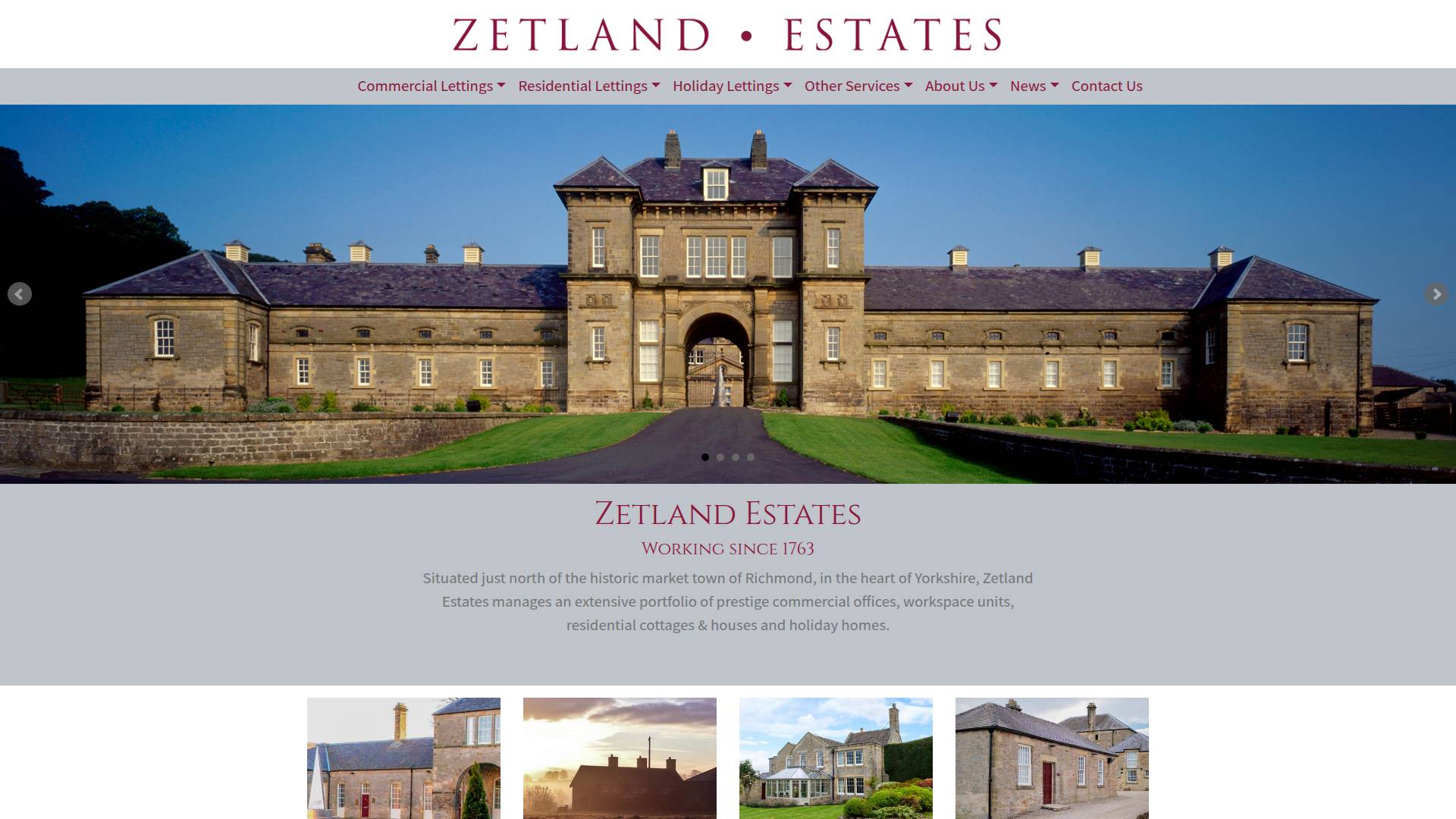 Situated just north of the historic market town of Richmond, in the heart of Yorkshire, Zetland Estates manages an extensive portfolio of prestige commercial offices, workspace units, residential cottages & houses and holiday homes.